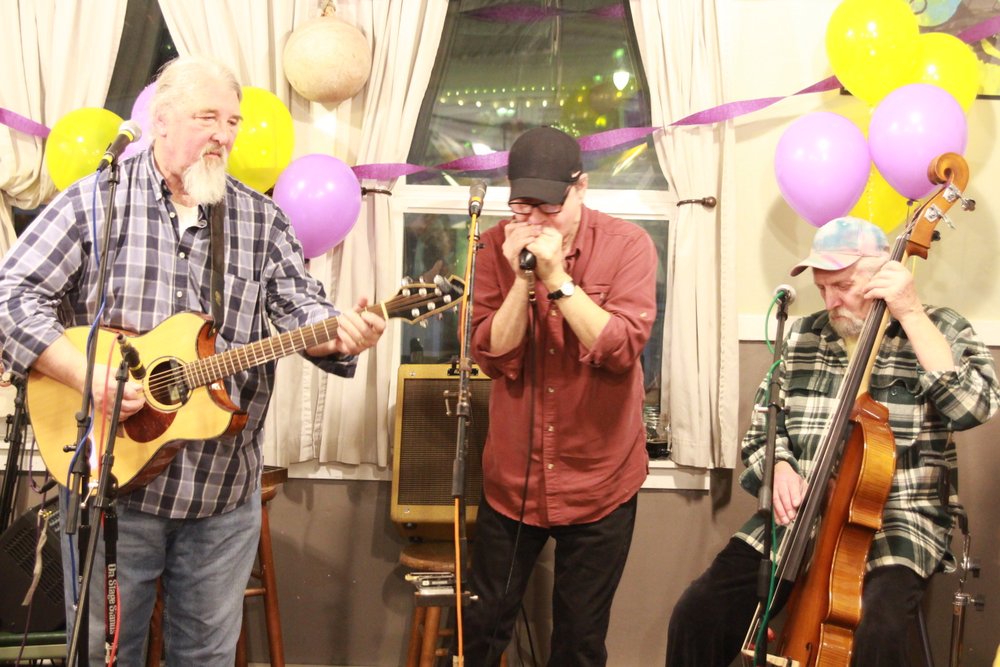 For Raven Radio’s golden birthday – turning 36 on March 6th – staff hosted a party in Beak Restaurant with live music from Belly Meat, decorations from the founding, and a custom cake. (Emily Kwong/KCAW photo)