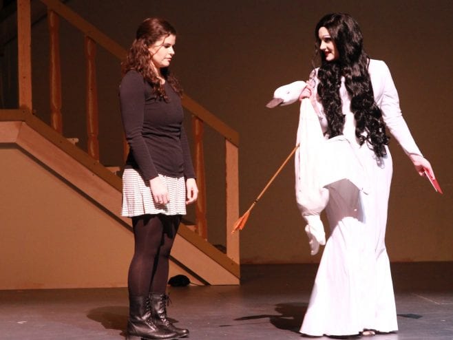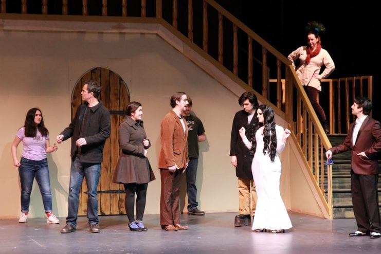 Gomez and Morticia Addams (played by Christian Litten and Bailey Craig) argue about their daughter Wednesday (Photo/KCAW/Katherine Rose)
