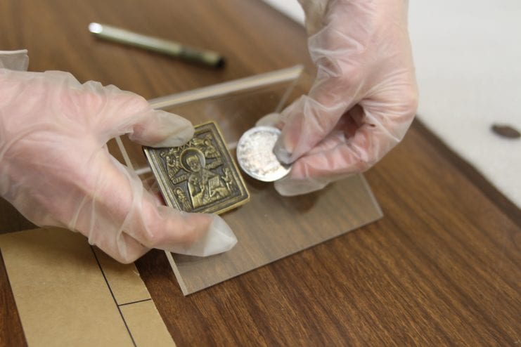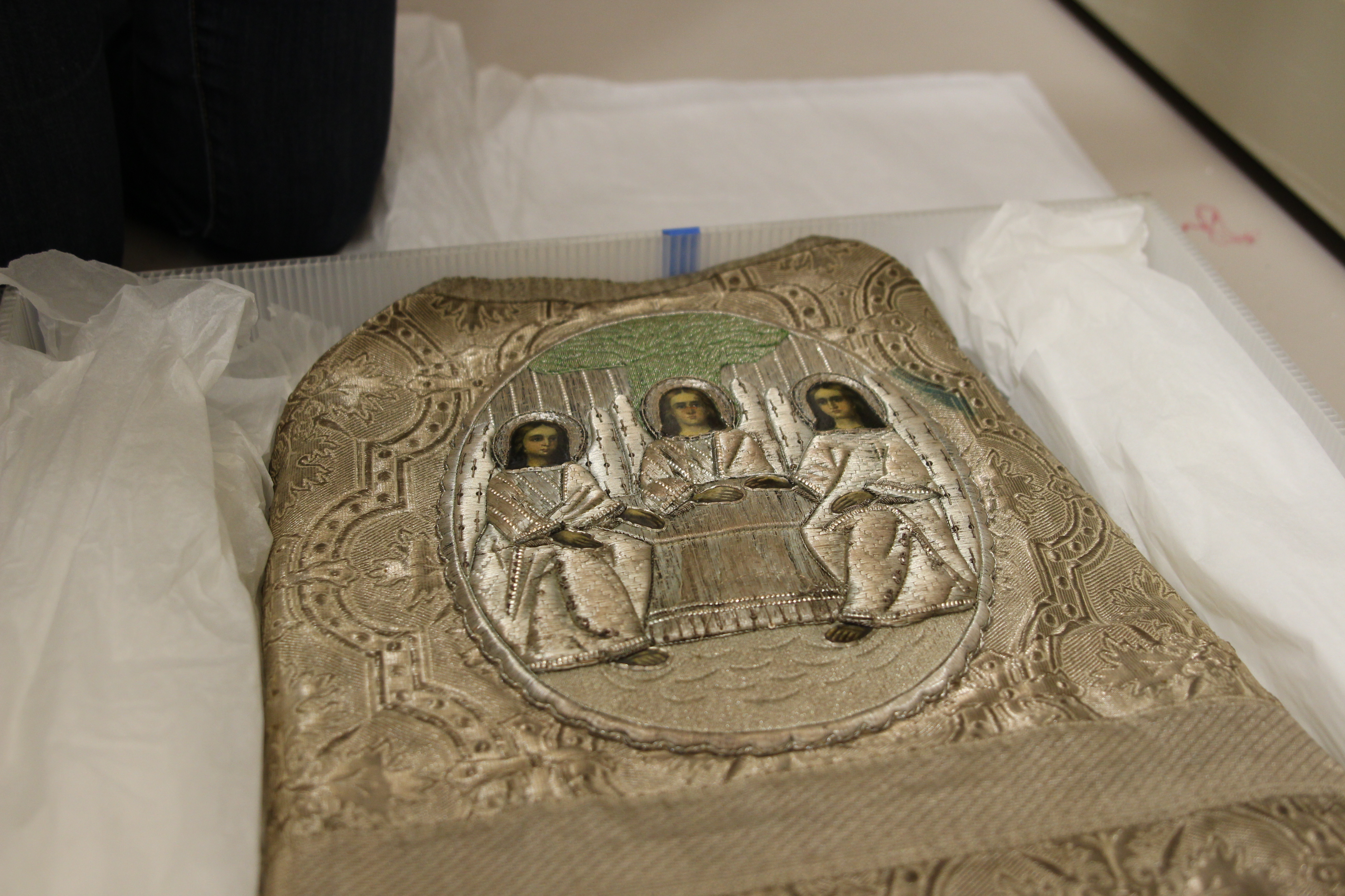 The back of a Russian Orthodox priest’s robe from the 1800s- one of 96 objects that will be on display at the new museum. (Photo/KCAW/Katherine Rose)