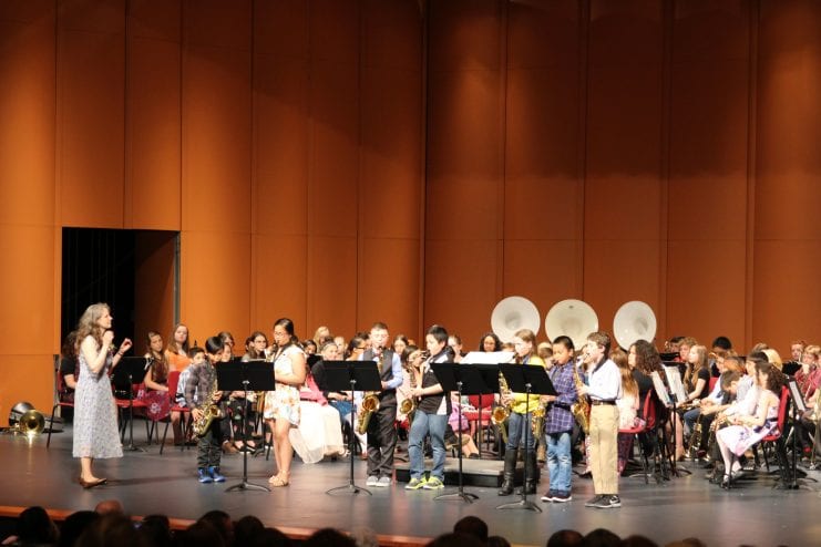 “On that day, those fifth graders – these fifth graders – were very proud of themselves,” Brandt-Ferguson tells the audience. “They should be because they were doing an awesome job for playing their instrument for four weeks. But boy, have we come a long way,” she adds.