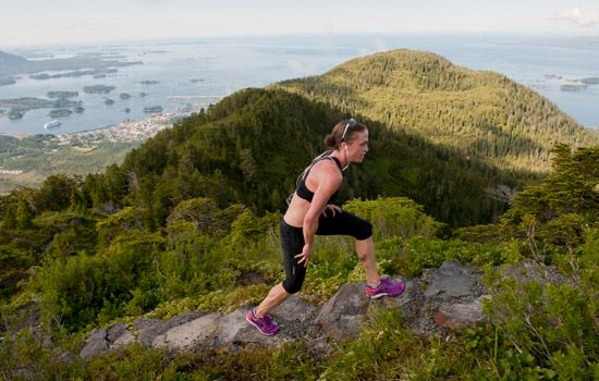 TOP OF THE HILL – Tansy Brown of Bend, Ore, runs along the ridge of Gavan Hill Saturday morning during the Alpine Adventure Run. (Sentinel Photo by James Poulson)