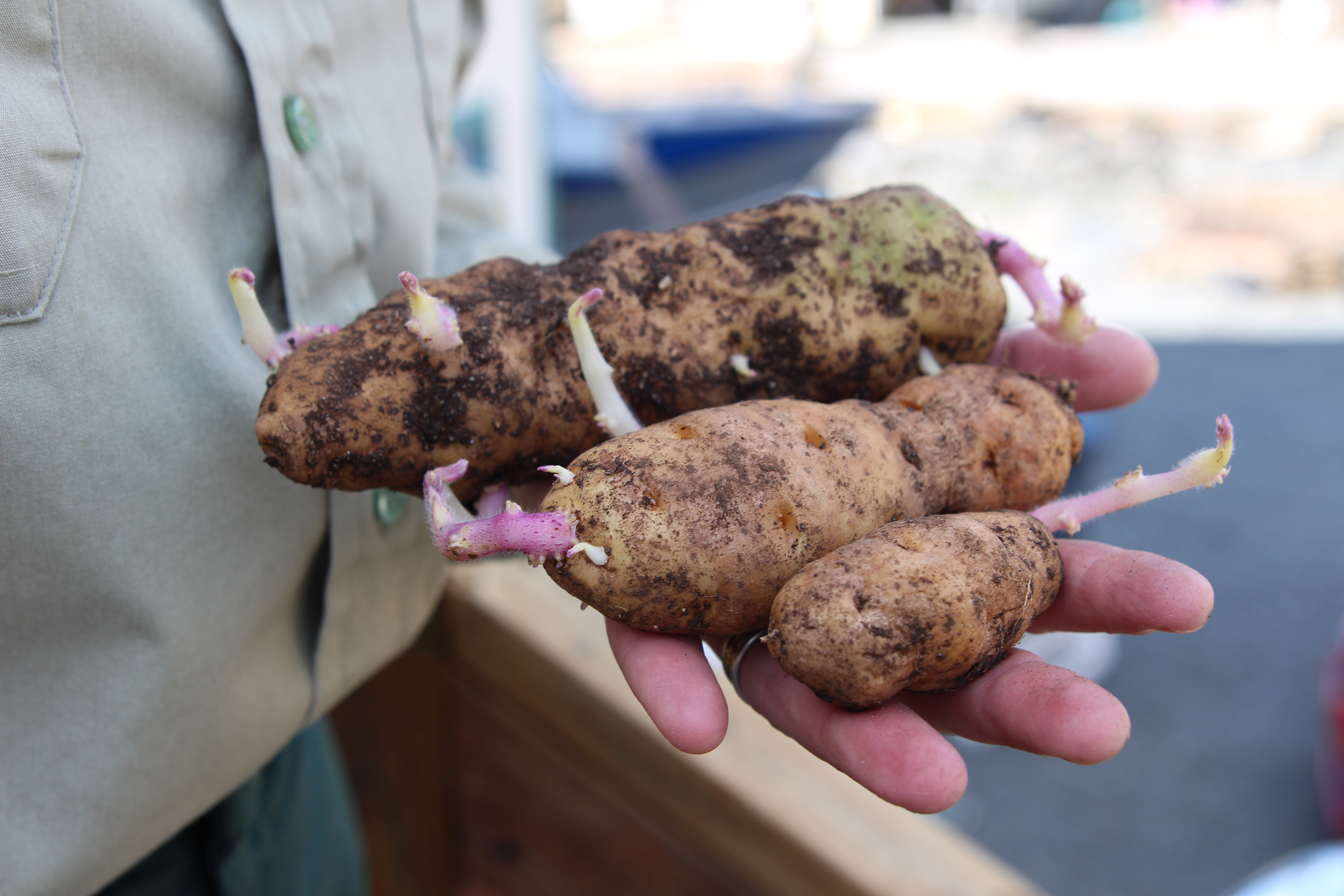 They started with potatoes Putz received from a Sitka family that had been passing down the seedlings for generations. Community volunteers and Pacific High students planted the potatoes. But then, as word got around about the garden, more spuds started showing up at Putz’s doorstep.