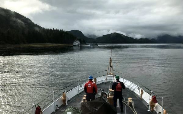 The Allen Marine tour vessel St. Eugene came to the aid of the Alaskan Dream, taking off its 43 passengers and 10 crew. All were transferred to Allen Marine’s dock in Jamestown Bay.