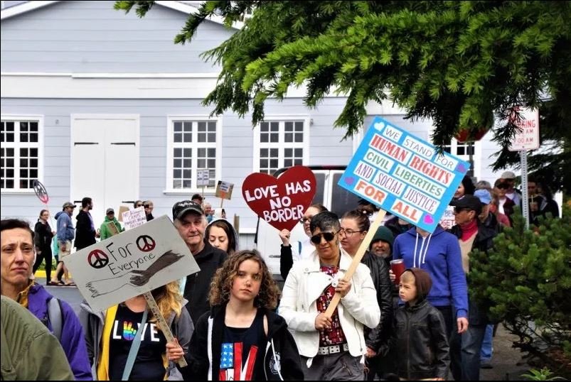 About 150 Sitkans joined nationwide demonstrations Saturday (6-30-18) opposing the US policy of separating families who have illegally crossed the border from Central America. (KCAW photo/Rich McClear)
