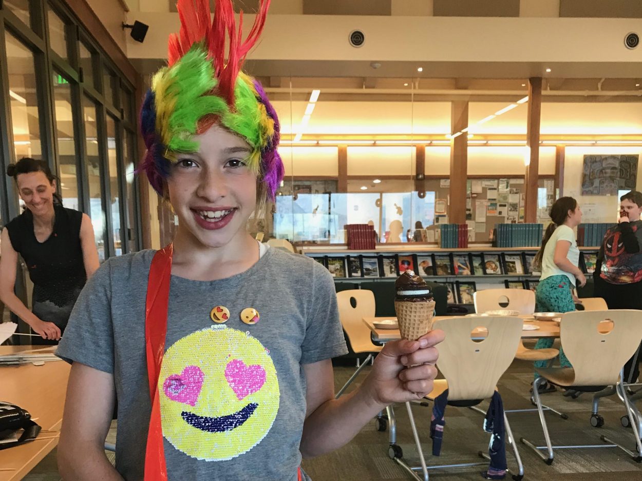 It’s clear that Rial has a special relationship with the tweens. Whenever she starts talking, all the kids listen, and she makes poop jokes right alongside them. She also, notably, has allowed them to work with sticky icing and cookies inside the library. I talk with Pierce again.