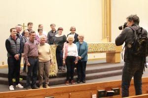 Say Borscht! The Von Wrangell family poses for Daily Sitka Sentinel photographer James Poulson in the Sitka Lutheran Church. The Baron Ferdinand von Wrangell was a Baltic German from Estonia, which was home to many of the elite class of professionals who served the Russian Empire. Following the Russian Revolution in 1919, Baltic Germans dispersed back into Europe. Many of the Von Wrangells now live near Frankfurt, Germany. (KCAW photo/Robert Woolsey)