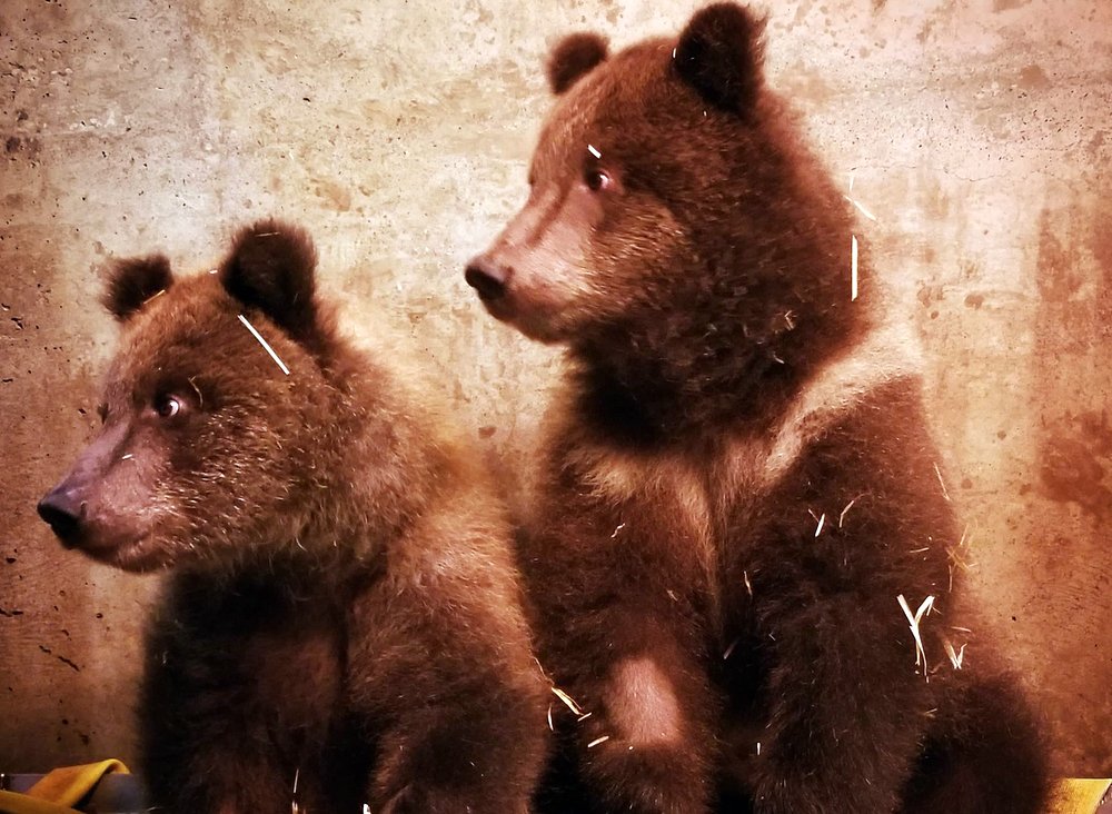 Seward Sisters “Nuka” and “Nikiski” were orphaned over three weeks ago when their mother was killed raiding a chicken coop. According to Fortress co-director Evy Kinnear, the residents of Seward agreed to tolerate having the cubs roam free while the Fortress obtained the necessary permits to expand its brown bear habitat.