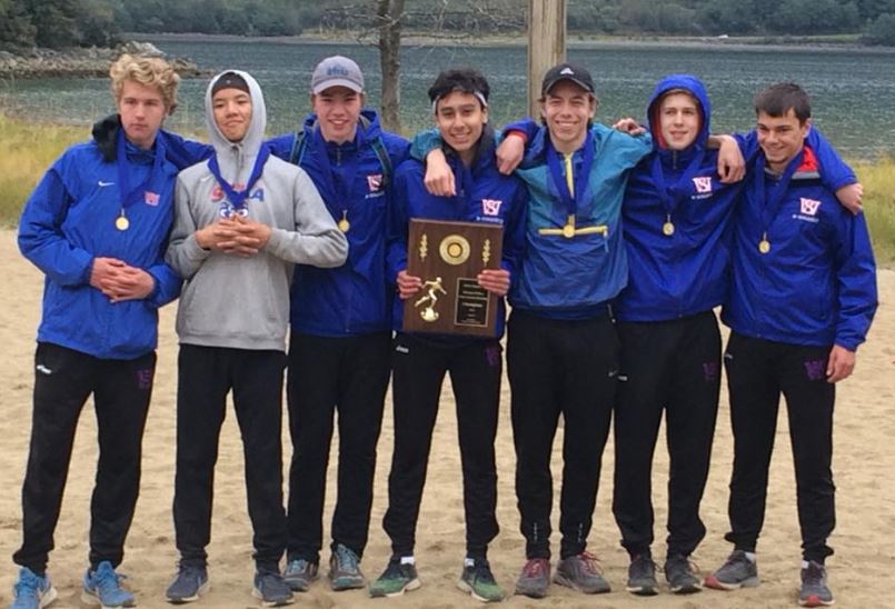 The Sitka High Boys Cross Country team poses at Sandy Beach in Juneau. The Wolves are the Region V, DII champs. (Sitka High image)