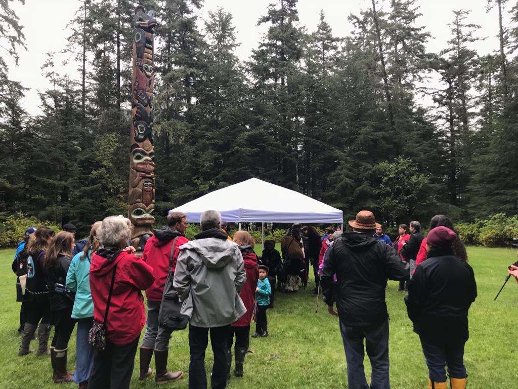 People attending the ceremony gathered at the base of the totem pole that now sits where the fort once stood. When the ceremony began, the air around the crowd turned somber. At times, the only audible noise was the seagulls at the mouth of the Indian River in the distance.
