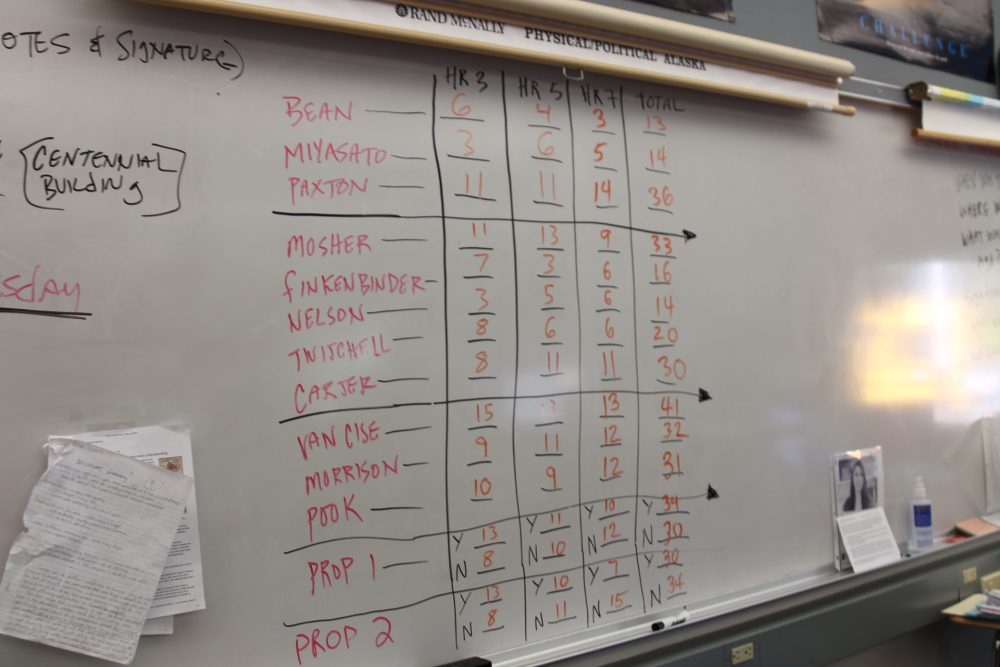 The outcome of the 2018 mock election at Sitka High closely mirrored the 2018 municipal election. (Emily Kwong/KCAW photo)