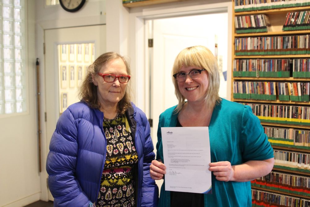 Gayleen Jacobs of Sitka won Raven Radio’s 2018 raffle, earning two round-trip tickets anywhere Alaska Airlines flies with no blackout dates. General Manager Becky Meiers pulled the raffle stub from a bin of hundreds and presented Jacobs with her tickets at the Cable House. Congratulations Gayleen!