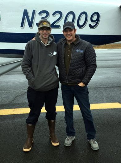 A happy Thanksgiving for Fred Sharpe (l.) meant freeing the whale with specially-designed equipment from NOAA Fisheries. He was assisted by Island Air Express pilot Scott Van Valin, who first spotted the whale on Tuesday, November 20. (NOAA photo)