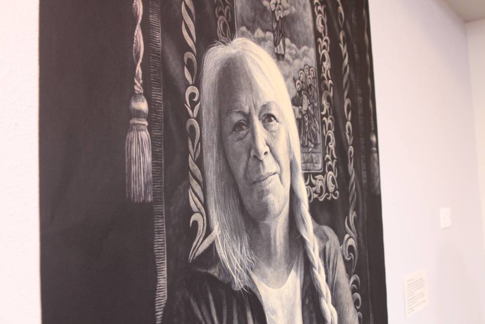 “Faces of Sitka” is in intimate collection of full-scale portraits by local artist Steve Lawrie of the places and people he loves. Featured here are portraits of Pat Welsh and Sarah Lawrie, the artist’s daughter. Steve Lawrie will debut an even larger exhibit in Fall 2019. (Emily Kwong/KCAW photo)