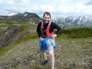 Daily Sitka Sentinel Sports editor Klas Stolpe poses with his signature “No on fights alone” shorts, which he wears on all his endurance run to honor his brother who is battling cancer. The weekend before New Years, Stolpe knocked out a 59-mile run for his 59th birthday. (Klas Stolpe photo)