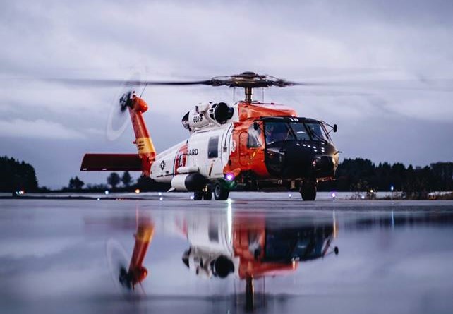 One of Air Station Sitka’s three Jayhawk helicopters warms up on the ramp. With a staff weighted toward pilots and highly-trained technical crews, Frawley says Air Station Sitka can go some time without paychecks. But he’s also prepared to help personnel who are “really up against financial distress” during the government shutdown. (USCG photo/Austin Clary)