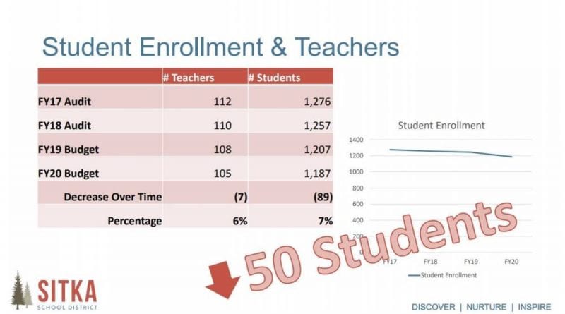 The sharp decline in enrollment has taken the district by surprise. When the official enrollment count was taken last October, Sitka was 43 students below budget projections for the current year — creating an operating deficit of $138,000.