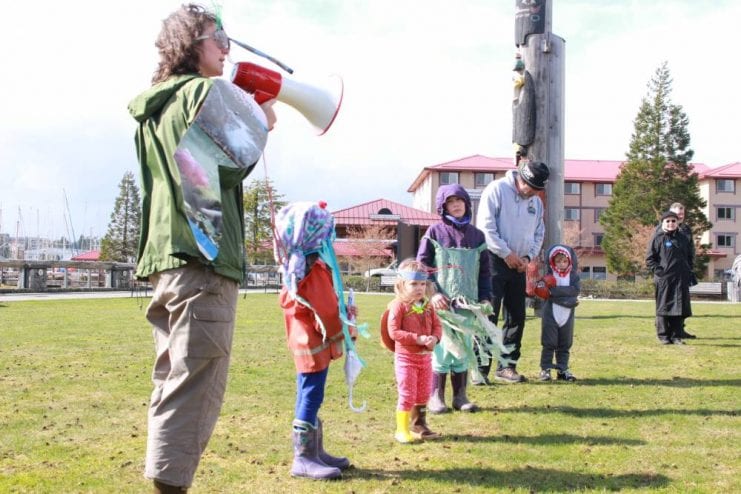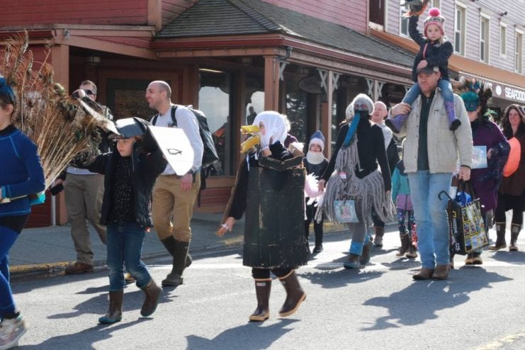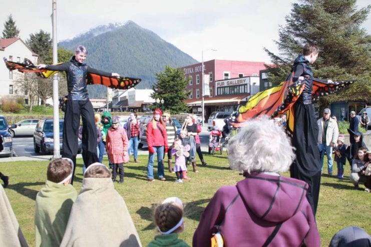 Sitkans marched in costume down Lincoln Street Friday, April 19, for the 18th Annual Parade of Species, a celebration of Earth Day and stewardship for our environment organized by the Sitka Conservation Society. Many of their outfits were made with cardboard, plastic bags, repurposed fabrics and other recycled materials. The event culminated in a post-parade celebration at the Sitka Sound Science Center.
