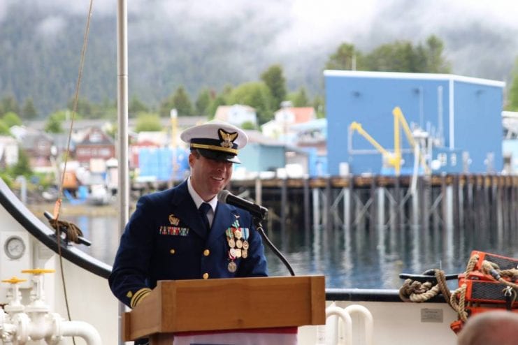 The change of command ceremony took place aboard the buoy deck. Over the course of his tour in Sitka, Lieutenant Commander Armstrong led the crew on a voyage through the Northwest Passage. He was the first to take a boat through the tricky waterway in several decades.