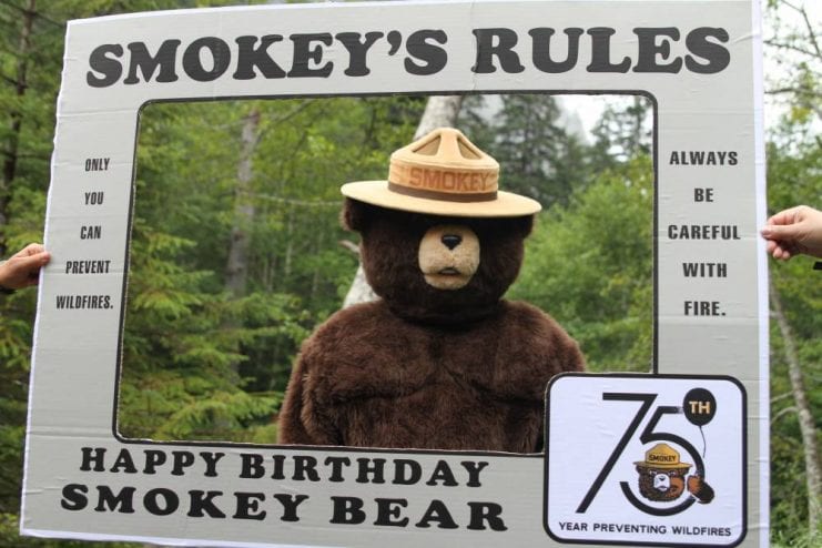Smokey Bear celebrated his 75th birthday over the weekend at the newly refurbished Sawmill Creek Campground, with birthday cake, photos, and fire prevention activities.