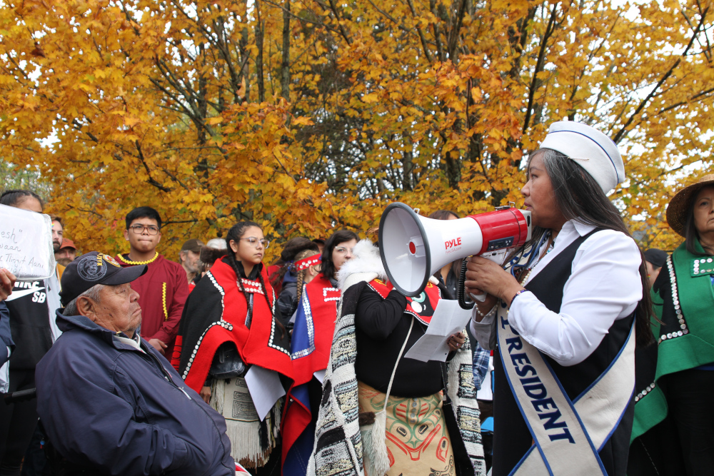 Mt. Edgecumbe High School Social Studies teacher Dionne Brady-Howard also spoke at the event, arguing that the effects of colonization are not limited to the past. She says the forced assimilation of Alaska Natives, along with harsh punishments for speaking their languages and other forms of violence, caused deep pain that has not gone away.