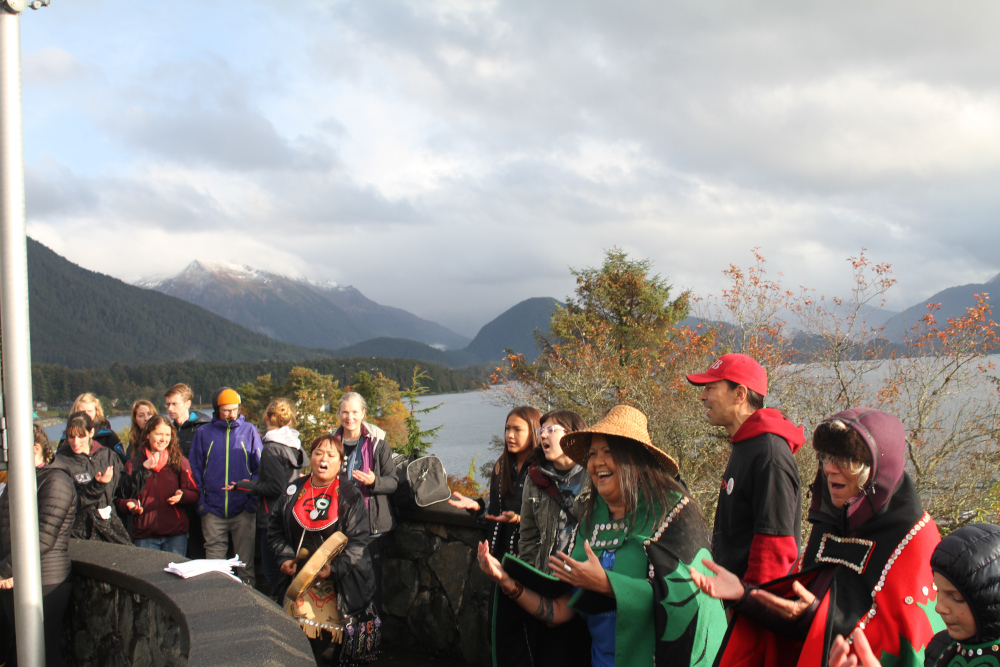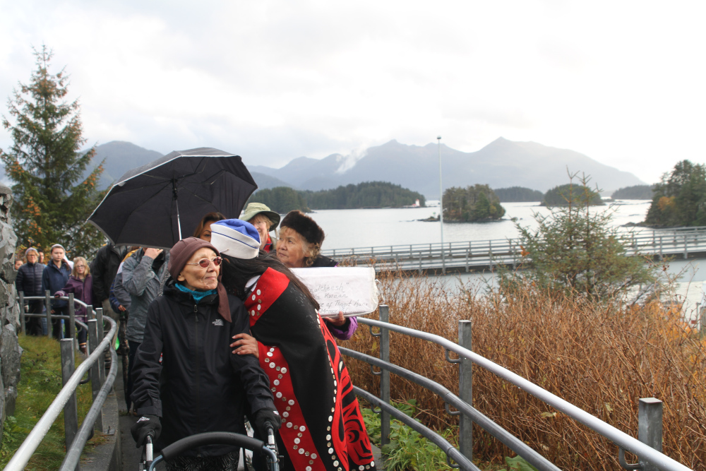 As musket fire heralds the raising of the American flag atop Castle Hill during Sitka’s Alaska Day Festival on October 18, at the base of the hill a different ceremony mourns the loss of Tlingit land and grieves for lives lost in the conflict over colonization and settlement.