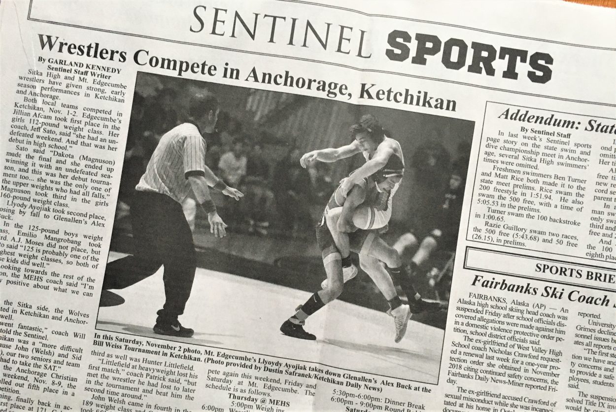 Daily Sitka Sentinel Sports editor Garland Kennedy covers the regional and state volleyball tournaments; regional and state swim meets; and previews this weekend’s wrestling action. Kennedy says that this year’s Region V Volleyball tourney between Sitka High and Mt. Edgecumbe was exceptionally well-played, perhaps “the best sports I’ve seen.” With KCAW’s Robert Woolsey.