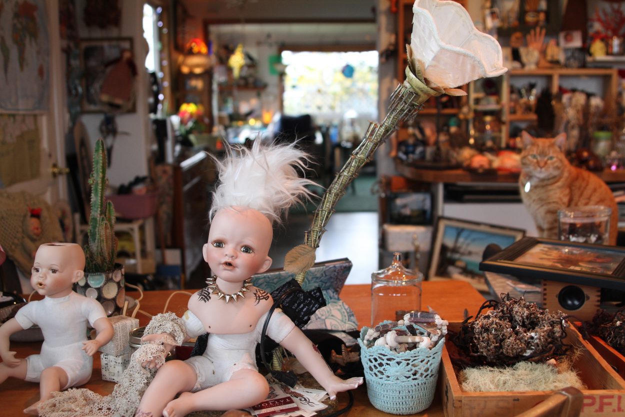 So now, Ash lives among her thousands of dolls, her multitude of creations, embracing the chaos. She’s always working on something, and truly nothing is wasted. On her floor is a deflated blow-up doll her friend found at the Starrigavan Rec. Ash has decided that she’s putting it in her garden, where it’s going to be a planter.