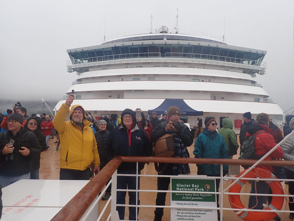 On the bow of the Holland America ship, passengers wrapped in parkas on a chilly summer day hoot and holler as a humpback whale sidles up to the ship. This is what they’ve come to Alaska to see.