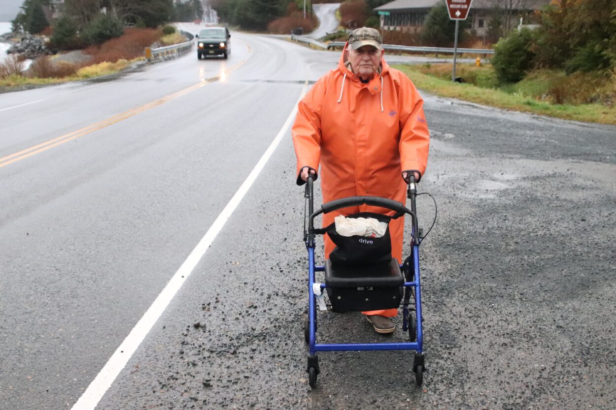 Ray Majeski is a former police officer with 25 years of service, who also worked as Sitka’s harbormaster for 11 years. Although he’s suffering from nerve damage in his legs from his career in law enforcement — and walks with great difficulty — he decided to walk yesterday from the Sitka ferry terminal to Harrigan Centennial Hall, to honor all those who have sacrificed in order that we can have the freedom to vote.