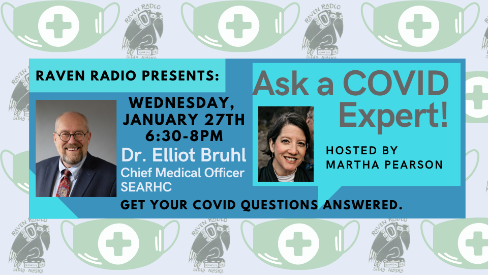 On Wednesday, January 27th, at 6:30pm Health Chat host Martha Pearson will be joined by Chief Medical Officer of SEARHC, Dr. Elliot Bruhl. Submit your questions to covidexpert@kcaw.org by Friday, January 22nd. This event is free and open to the public and will also be broadcast live on the air.