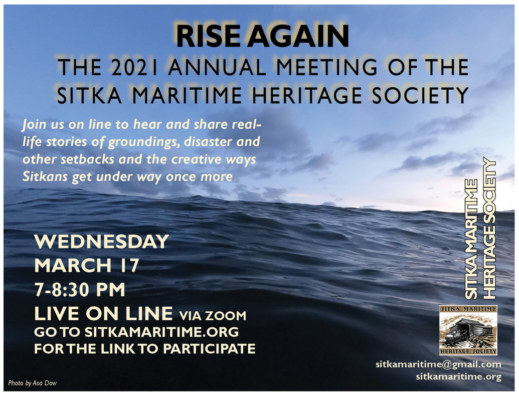 The Sitka Maritime Heritage Society annual meeting takes place on Wednesday, March 17 from 7:00 to 8:30 p.m. Those interested in participating can visit their website here: http://www.sitkamaritime.org/annual-meeting-zoom-link.html