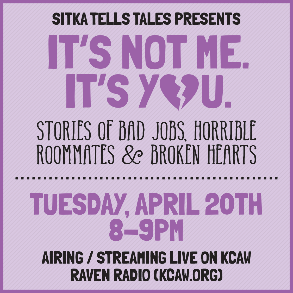 Artchange Inc. and KCAW present the latest installment of Sitka Tells Tales, true stories told live on Raven Radio. On Tuesday, April 20th, from 8-9pm, five storytellers told us their tales of bad jobs, horrible roommates, and broken hearts.