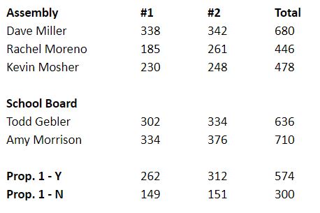 In the three-way race for two open assembly seats, Dave Miller has a decent lead. Miller earned the most votes in precincts 1 and 2 on election day, receiving 680 votes overall. As long as the early and absentee votes line up similarly, Miller will likely be elected to the Sitka Assembly. But the race for the second seat is extremely close. So far, incumbent Kevin Mosher has earned 478 votes, with Rachel Moreno right behind him with 446 votes. The two precincts split on the winner, with Mosher winning precinct 1 and Moreno winning precinct 2. The two candidates are separated by a difference of just 32 votes.