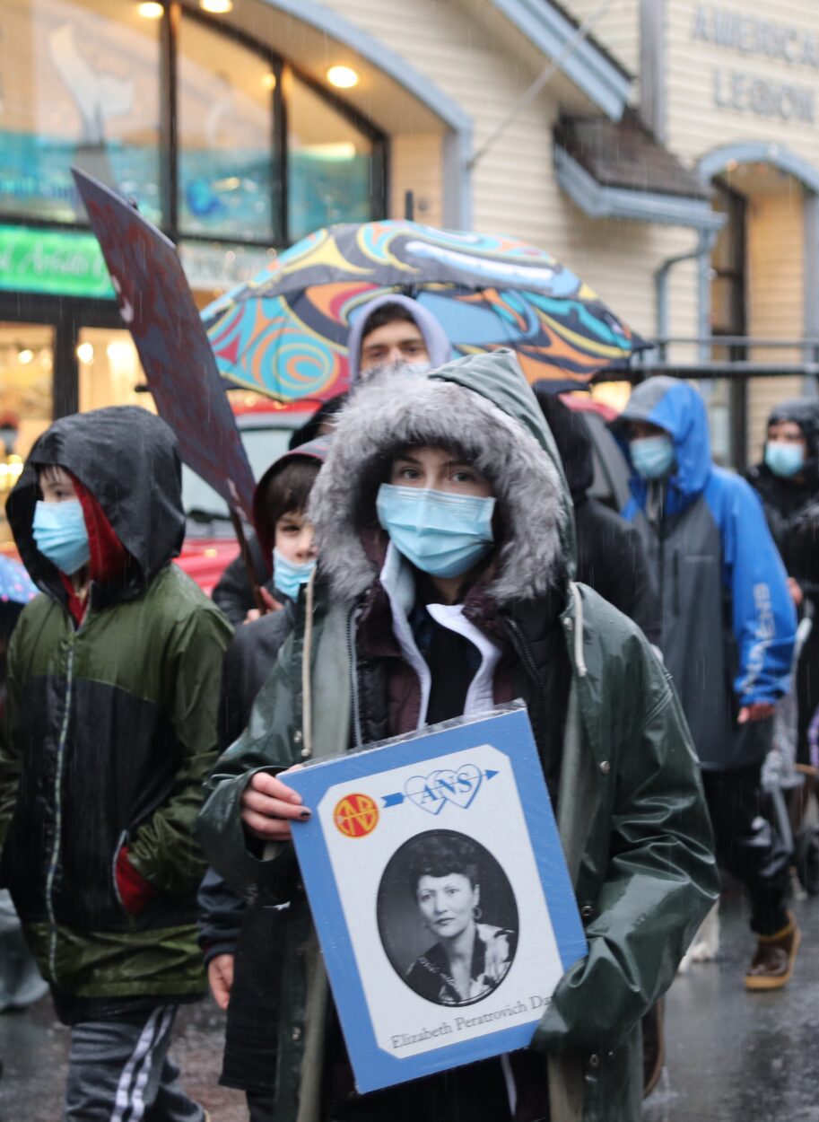 February 16 marks Elizabeth Peratrovich Day. It’s been 77 years since the Tlingit civil rights leader’s instrumental work brought about the passage of Alaska’s Anti-Discrimination Act — the first of its kind in the United States. Amid heavy afternoon rain, Sitkans marched in a parade from Crescent Harbor to ANB Hall, then heard speeches at an open mic event to honor the civil rights leader and her legacy.