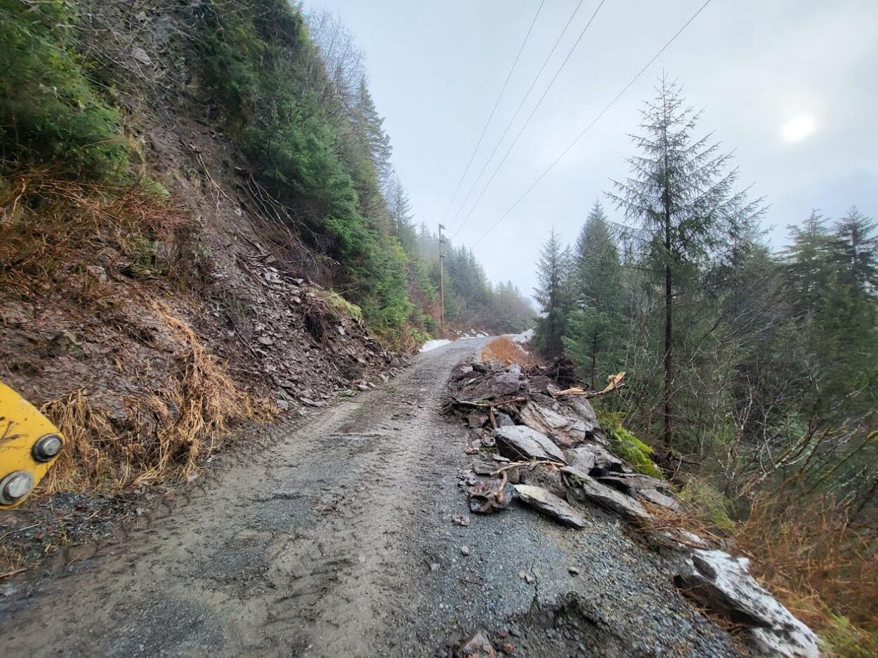 Extraordinary enough to cause one confirmed landslide. Fritsch said the weather service received a report early Thursday (2-17-22) of a landslide across Green Lake Road, blocking access to the city’s hydroelectric dam. In an email to KCAW, Electric Utility Director Scott Elder said the time of the slide is unknown, but it was reported to their office at 9:10 a.m. He said that staff from the nearby NSRAA hatchery cleared debris from the road by mid-day.