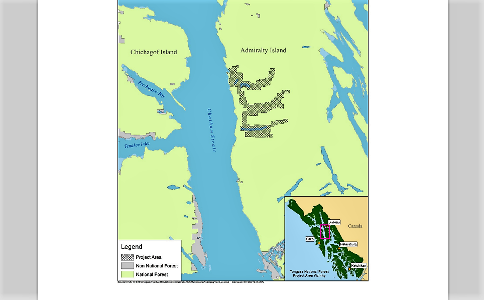 Cube Cove is on the northwest side of Admiralty Island. The area was heavily logged–mostly by clear cut–in the 1980s and 90s by Shee Atiká, Sitka’s Native Corporation. The U.S. Forest Service bought the land for just over $18 million, completing the deal in 2020. Shee Atiká had done some reclamation work after the logging but the Forest Service wants to finish it up.