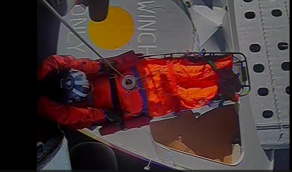 A helicopter crew from Air Station Sitka arrived on the scene around 7:30 am, and safely hoisted the patient from the ship in a rescue litter. The man was then transported to awaiting medical personnel at Mt. Edgecumbe Medical Center for further emergency care.