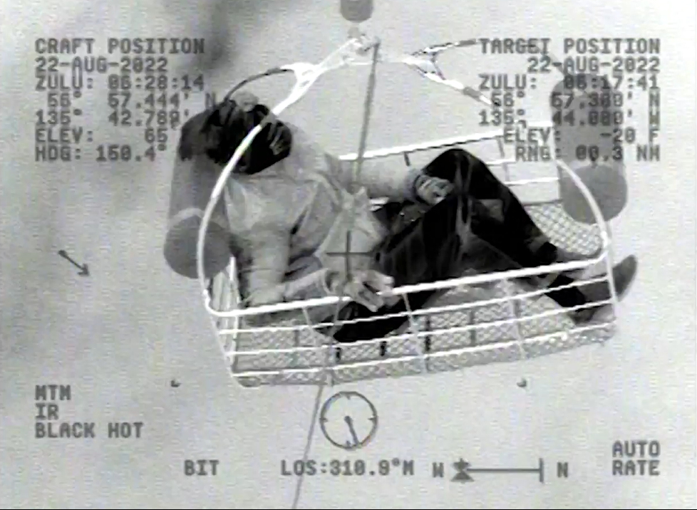 “The fog lifted in the sound and moved out, but out over the actual open ocean, it was still super thick. So pretty much dense fog from the surface to about 1000 feet,” he said. “We got on scene about 7:30, And we made comms with the cruise ship, but we couldn’t actually see him down there. Getting down to the water and dense fog like that, and then conducting a medevac off the ship is obviously a very risky evolution. Hoisting itself is very risky to begin with.”