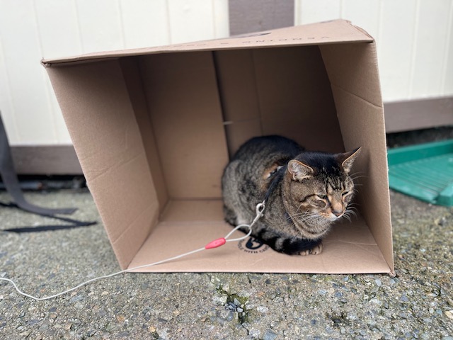 The group also includes dogs Bjorn and Xena and a cat on a long leash, Theodore, who relaxes in a cardboard box on the ground. Jasper said that with this trip, Theodore has visited every state except Hawaii.