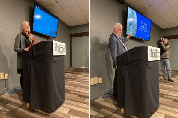 Asked by a chamber member whether Permanent Fund Dividends should be discontinued, Groh said he didn’t think that would solve the Alaska Disconnect, although he did support restructuring the dividend, and protecting the fund itself with a constitutional amendment. And he also did not support a strategy used by many governments, including the federal government: deficit spending. “We can’t borrow our way out of this problem,” Groh said.
