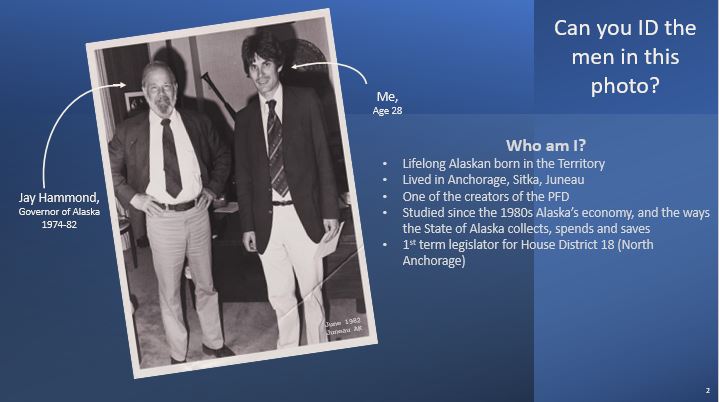 “The expertise that Cliff brings to the table, well he’s actually earned a nickname,” said Himschoot. “He’s the ‘Fiscal Cliff.’ So we talk a lot about our fiscal cliff here in Alaska, and he really, truly is literally, our Fiscal Cliff. So he’s going to share some of those ideas that he has with us today – not even just ideas – but facts and figures about where we are and how we got there. And some ideas for how things might be different in the future.”