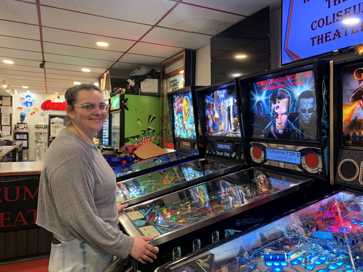 Justice has been working at Sitka’s Coliseum Theater since last summer, taking tickets and selling concessions. Before then, her arcade experience was pretty casual. But now, when things are slow at the popcorn counter, she often sneaks around the corner to the black and icy blue pinball machine with Arnold Schwartzenegger’s half-molten face on the front and plays.