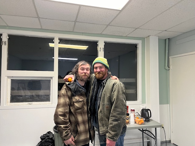 “It’s all about staying warm, and being amongst good people,” he says, gesturing to the room of people behind him. “And I appreciate it.”