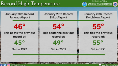 Sitka’s temperatures soared to record-breaking highs this week and will likely stay above average through mid-February.