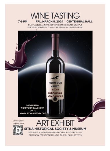 The Sitka Historical Society is hosting a wine tasting and art display tonight, 7-9 p.m. Friday, March 8, in the main auditorium of Harrigan Centennial Hall. The event will celebrate the Sitka History Museum’s surprising art collection: “From Our Vault: Sitka’s Treasures on Canvas.” Board member John Stein says many of the pieces are from the 1800s and precede the creation of the museum. Other pieces are contemporary works by artists Norm Campbell and Steve Lawrie. Tickets $40, available online.