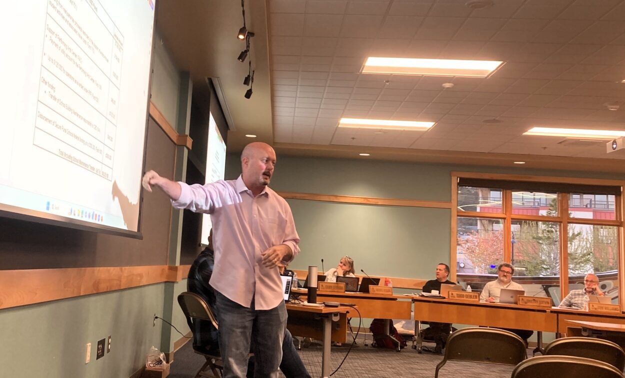 The school board has a statutory obligation to pass a budget by May 1, so that is what it did (4-0 with Steve Morse absent and excused). But non-retention notices don’t have to go out to teachers until May 13. Board president Tristan Guevin said the district should consider this a placeholder budget until more information came in about the state operating budget, and other variables like insurance premiums, and federal “Secure Rural Schools” funding. He called for a special meeting on May 9, to give the administration more time to adjust the numbers and plan for next year in a way that would help the district recover its momentum. Even with the possibility of saving four teaching jobs, that is a tall order. “In my time in Sitka,” said Guevin, “I’ve never come close to seeing reductions like this.”