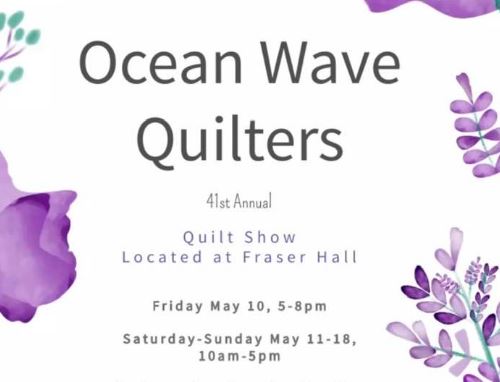Megan Pasternak and Janine Holzman of Ocean Wave Quilters join us to discuss their organization’s annual show, which opens Friday, May 10, 5-8 pm and then daily through May 19. And, special Mother’s Day Tea on Sunday, May 12 at noon.