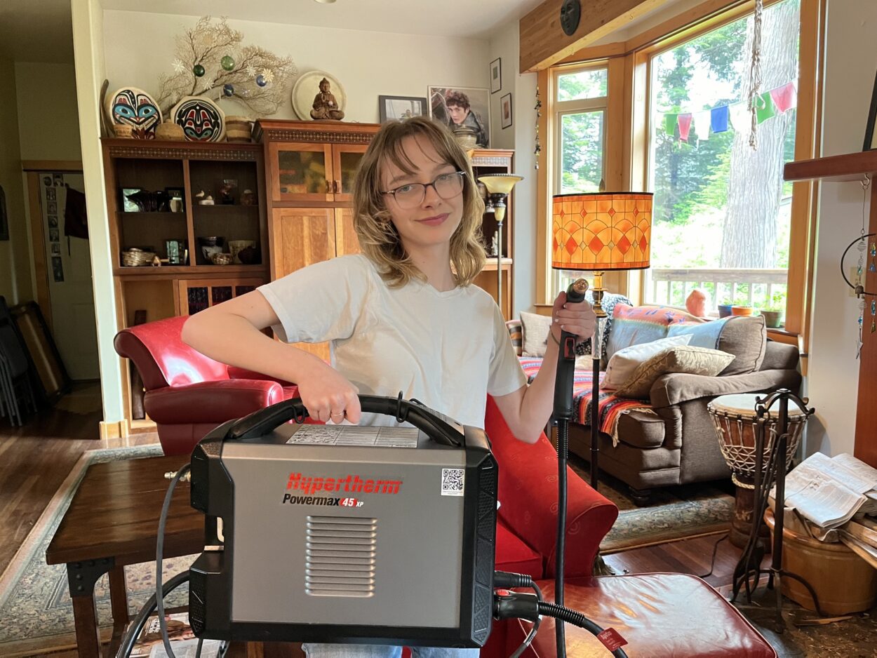 Hypertherm didn’t attend her graduation, but they did send her a surprise: a professional-grade plasma-cutter, which can cut and gouge metal, that retails for over $2,000. Mayo says as an entry-level welder, a new plasma-cutter would have otherwise been out of reach.