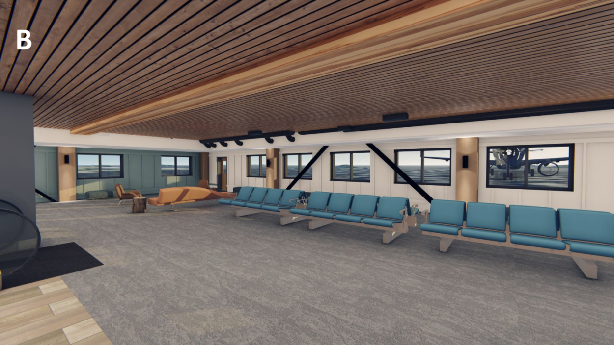 New construction includes an additional two-story building with expanded departure lounge, a skybridge connecting the new building to the original terminal building which will be remodeled with a new baggage claim system. While Sitka won’t keep its yellow jet bridge, Mayor Eisenbeisz asked if the community could keep another aspect of the old airport terminal, for nostalgia’s sake.