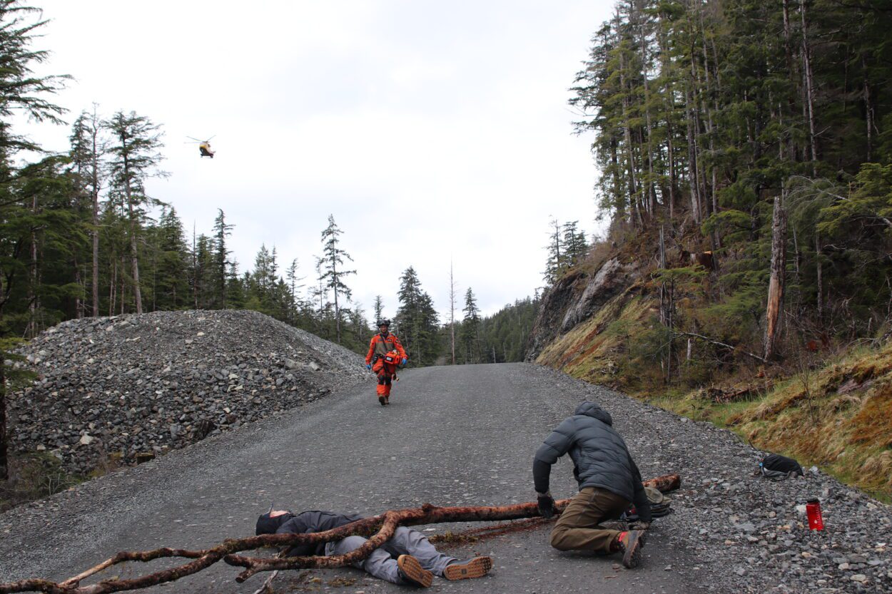 Carbajal, along with Lieutenant Commander Mick Klakring, helped organize this Search and Rescue Exercise, or SAREX. It’s an annual event that brings together the US Coast Guard and Air Force, the Royal Canadian Air Force, and volunteers from regional search-and-rescue organizations to train with simulated disaster scenarios. The agenda for this week includes rescuing people from an ATV wreck on Kruzof Island and a plane crash in Nakwasina Bay. Today, Carbajal is preparing for a mass casualty scenario. He explains as we drive up the road, looking for spots to drop more mannequins.